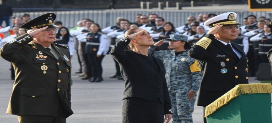 Rodeada de elementos del Ejército mexicano, de la Guardia Nacional funcionarios de su gabinete, de la jefa de Gobierno de la Ciudad de México, Clara Brugada, y directores de Protección Civil y de la Cruz Roja Mexicana, la mandataria izó la bandera a media asta para honrar a las decenas de miles de víctimas de ambos terremotos.