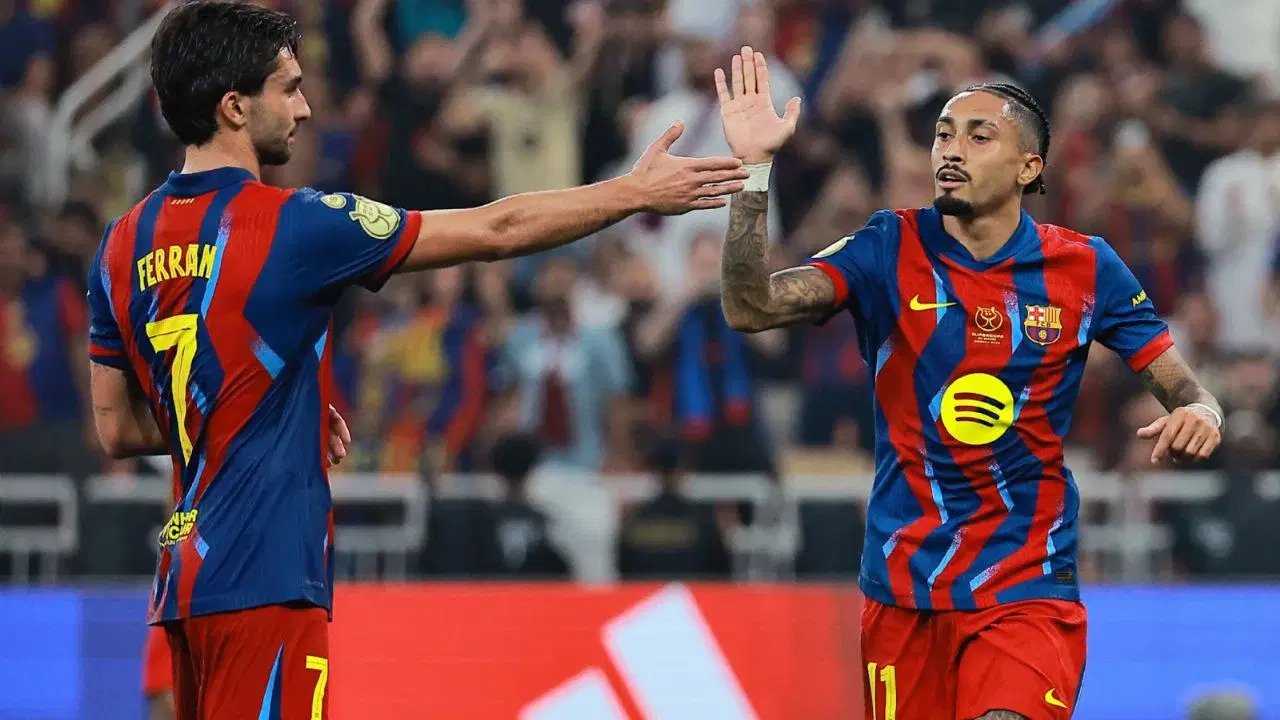 Arabia Saudita.- Sin Lamine Yamal de inicio, al no estar al 100%, y jugando los últimos 20 minutos, pero con Pedri guiando el fútbol de un Barça que firmó la mayor goleada de la Supercopa de España en las seis ediciones disputadas en Arabia Saudita, el equipo de Hansi Flick se impuso (5-0) a un Athletic endeble en defensa.
