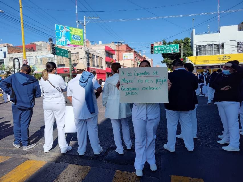 Trabajadores del sector salud se movilizan en Aguascalientes por estabilidad laboral